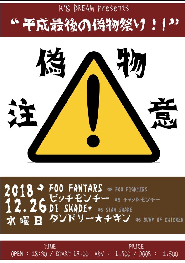 OPEN 18:30 / START 19:00 adv 1,500+D doors 1,500+D TICKET /K'S DREAM